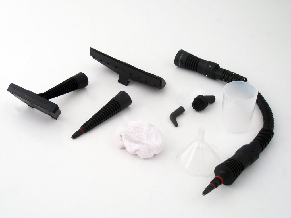 - Completo di accessorio per utilizzo generico, accessorio per vetri e finestre, prolunga flessibile, beccuccio iniettore,beccuccio angolato,spazzolino tondo, panno in tessuto, imbuto e dosatore.