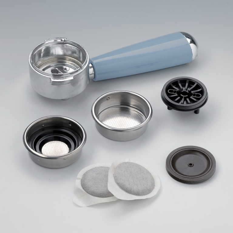 portafiltro per cialda e polvere (1 e 2 tazze), vassoio e contenitore acqua estraibili, permette di gustare a