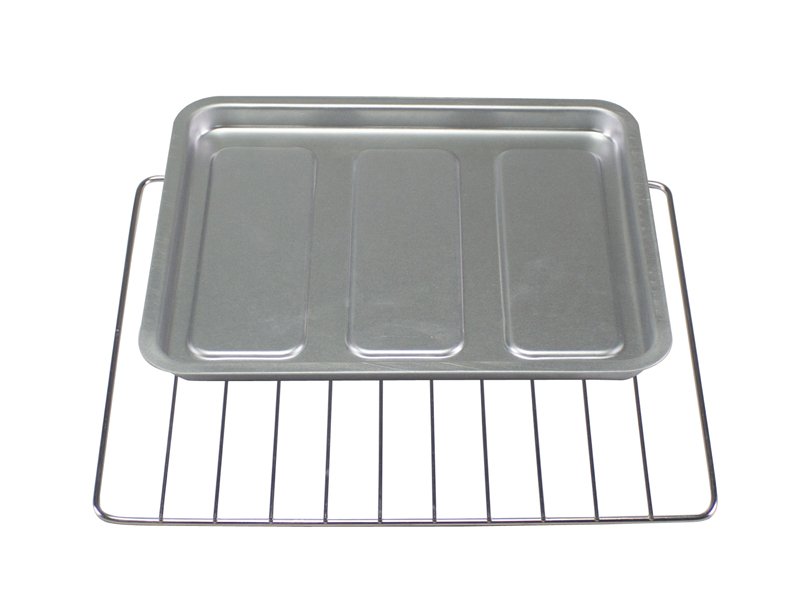Griglia in acciaio e vassoio in alluminio in dotazione.